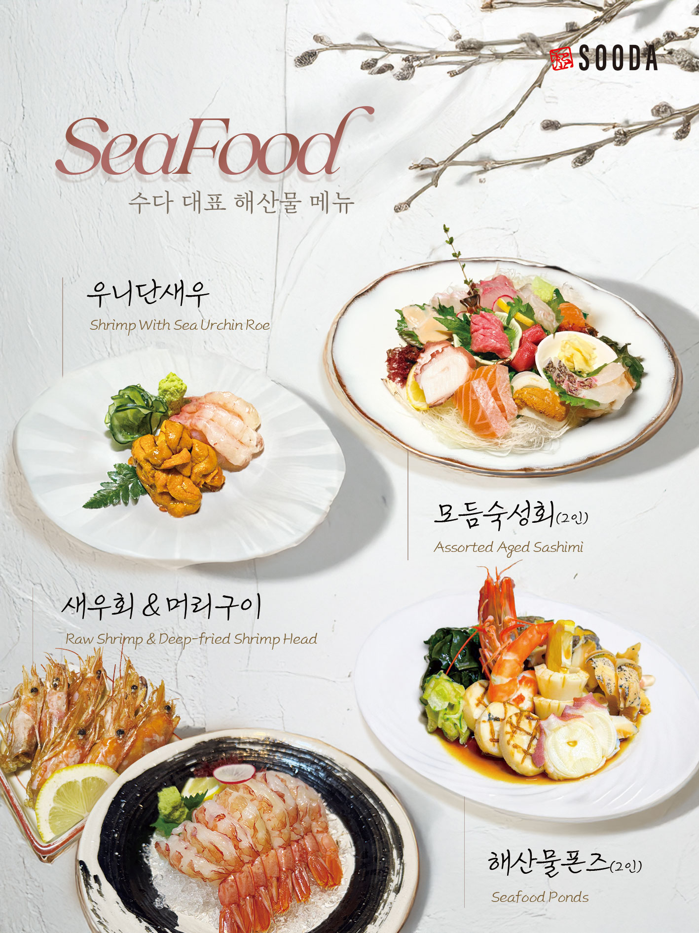 모듬숙성회 48,000 | 모찌리도후 14,000 | 스끼야끼 33,000 | 조개탕 28,000 | 명란크림우동 26,000 | 우니단새우 35,000 | 해산물폰즈 28,000 | 버터관자 28,000 | 아보카도참치 26,000 | 메로구이 28,000 | 통골뱅이탕 36,000 | 꿀고구마 16,000 | 치명적인 감자전 25,000 | 매운해물짬뽕탕 29,000 | 아보카도 명란구이 26,000 | 차돌박이 숙주볶음 29,000 | 모듬 꼬치 34,000 | 나가사끼 짬뽕탕 29,000 | 차돌 떡볶이 29,000 | 곱창 전골 33,000