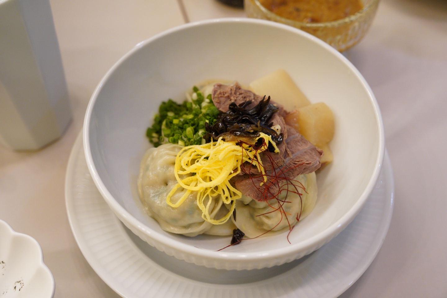 아롱사태 무우 만둣국 19,000 | 냉수육 & 야채무침 32,000 | 마늘종 고추튀김 20,000 | 바지락 애호박 비빔 감태수연면 19,000 | 마 낫또 비빔 감태수연면 19,000 | 아롱사태 무우 온탕면 18,000 | 홍시 화이트발사믹 알배추 샐러드 25,000 | 대접주인장 옛날떡볶이 22,000 | 모엣샹동-샴페인 120,000 | 기 알리온 크레망 – 스파클링 와인 77,000 | 웬티 베일리 피노누아 – 레드와인 66,000 | 샤또 퐁다흐자크 – 레드와인 44,000 | 웬티 쇼비뇽 블랑 – 화이트 와인 66,000 | 루이 페레 샤도네이 – 화이트 와인 66,000 | 샤또 퐁다흐자끄 – 화이트 와인 44,000 | 산타 이네스 샤도네이 – 화이트 와인 44,000 | 글라스와인 -레드/화이트 11,000