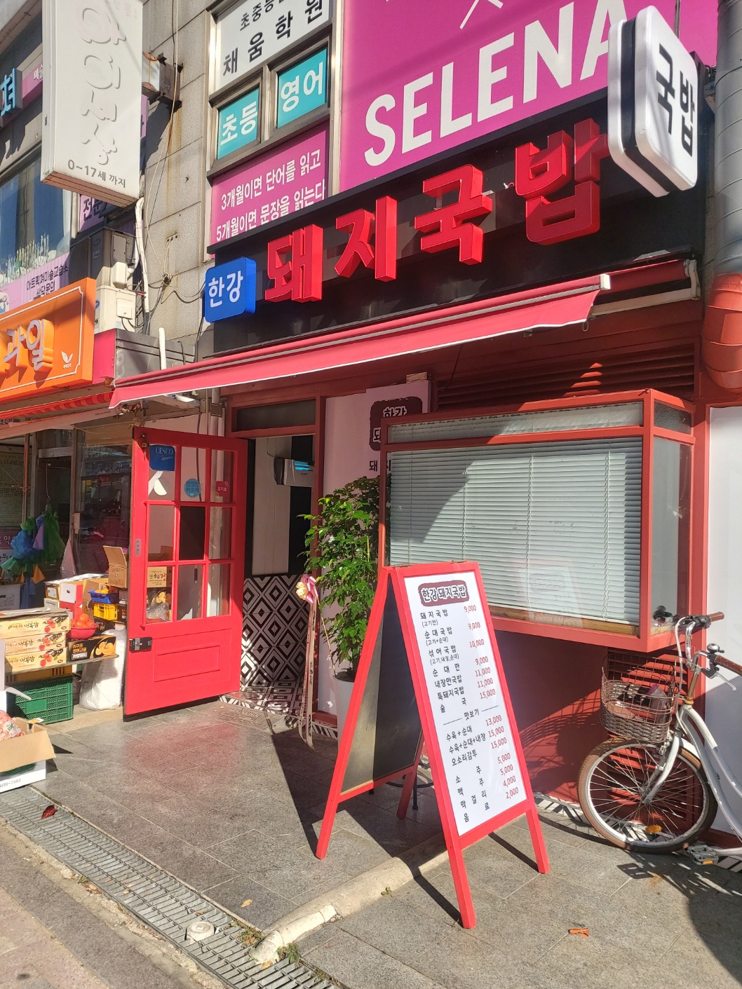 돼지국밥 10,000 | 순대국밥 10,000 | 돼지머리국밥 12,000 | 순살감자탕 12,000 | 빨강돼지국밥 10,500 | 빨강순대국밥 10,500 | 수육국밥 10,000 | 빨강수육국밥 10,500 | 모둠국밥 10,000 | 빨강모둠국밥 10,500 | 빨강돼지머리국밥 12,000 | 얼큰우거지순대국밥 12,000 | 얼큰우거지육개장 12,000 | 한우내장탕 13,000 | 갈비탕 13,000 | 한우국밥 13,000 | 떡만두국 (계절) 9,500 | 삼계탕 (계절) 15,000 | 토종순대 9,000 | 편육 9,000 | 연탄불고기 10,000 | 제육볶음 15,000 | 보쌈 18,000 | 국생정식 15,500 | 제육정식 17,000 | 물냉면 (계절) 9,000 | 비빔냉면 (계절) 9,000 | 회냉면 (계절) 11,000